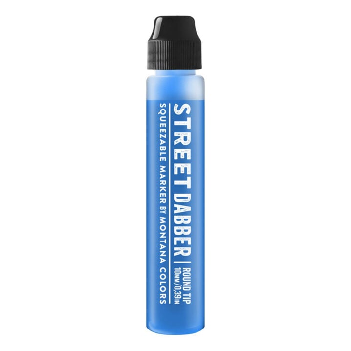 The MTN Montana Colors Street Dabber complete with 10mm round nib for medium width lines. Filled with permanent alcohol based paint that is available in eleven colors. This highly versatile tool works with many techniques and applications. Thanks to its lack of a valve, you can achieve fast, smooth lines on a multitude of surfaces. Its refillable, flexibile body is perfect for controlling the ink output pressure.