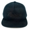 High quality snapback style cap featuring a tonal, embroidered 'Montana Colors' script on the front. The plastic strap on the back of the cap fastens together with a snap. Available in black only, with a 100% Cotton fabric construction.